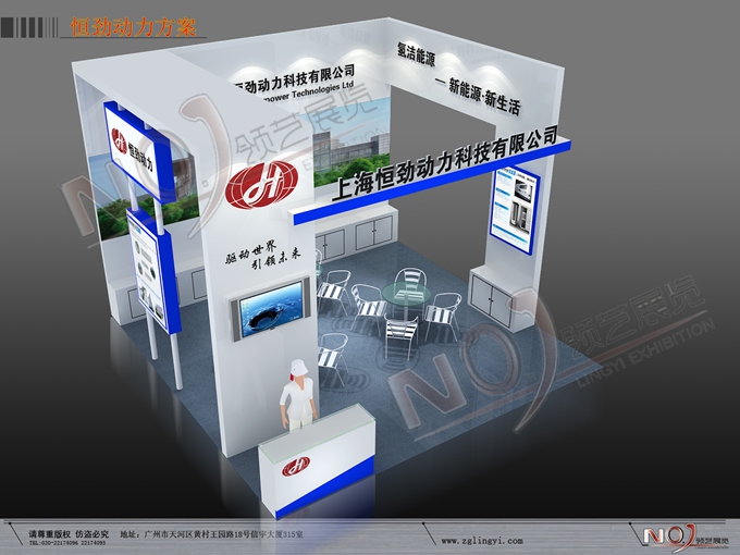 契合的恒勁動力品牌形象和產品特性,采用矩形結構,再搭配燈具燈光的效果,襯托出展位高端、時尚的氛圍,突出一種現代、歐美的時尚品味。