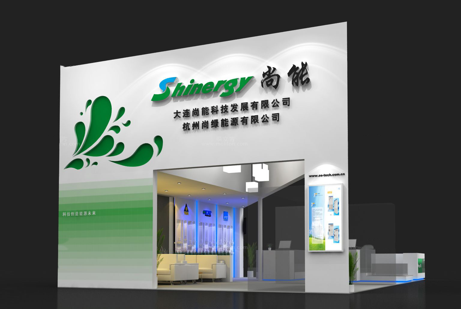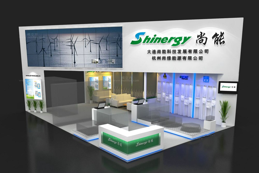 巧妙的運用白色、綠色作搭配,著重突出品牌和產品的展示,使整個展位時尚新穎。