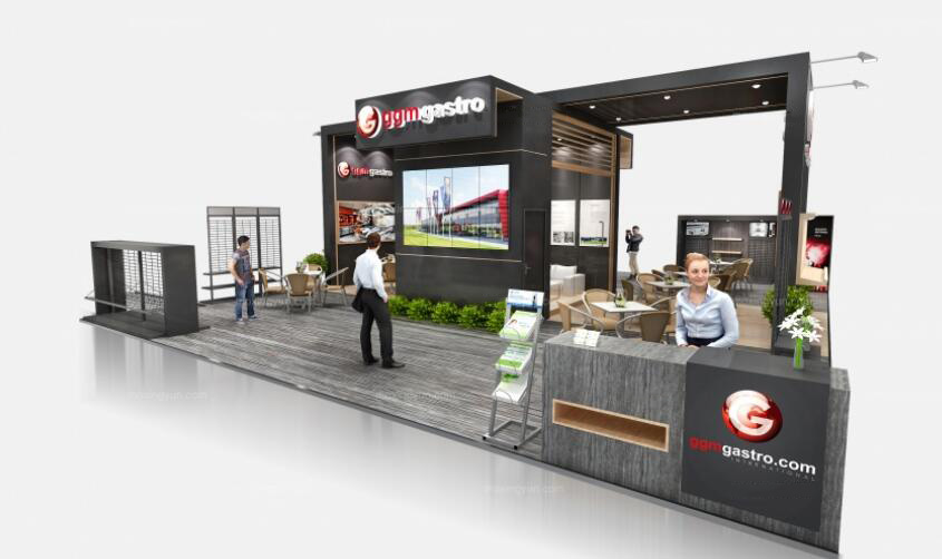 契合GGM的品牌形象和產品特性,采用矩形結構,再搭配燈具燈光的效果,襯托出展位大氣、豪華的氛圍,突出一種簡約、時尚的品味。