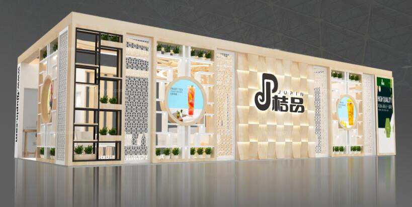 巧妙的運用米黃色、白色作搭配,著重突出品牌和產品的展示,使整個展位時尚新穎。