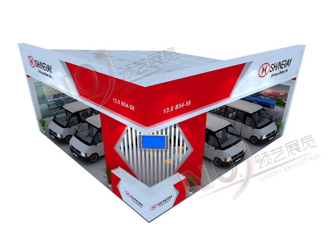 巧妙的運用紅色、白色作搭配,著重突出品牌和產品的展示,使整個展位時尚新穎。