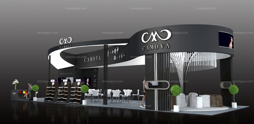 契合卡莫亞合成的品牌形象和產品特性,采用線條,再搭配燈具燈光的效果,襯托出展位簡約、舒適的氛圍,突出一種現代、高端的時尚品味。