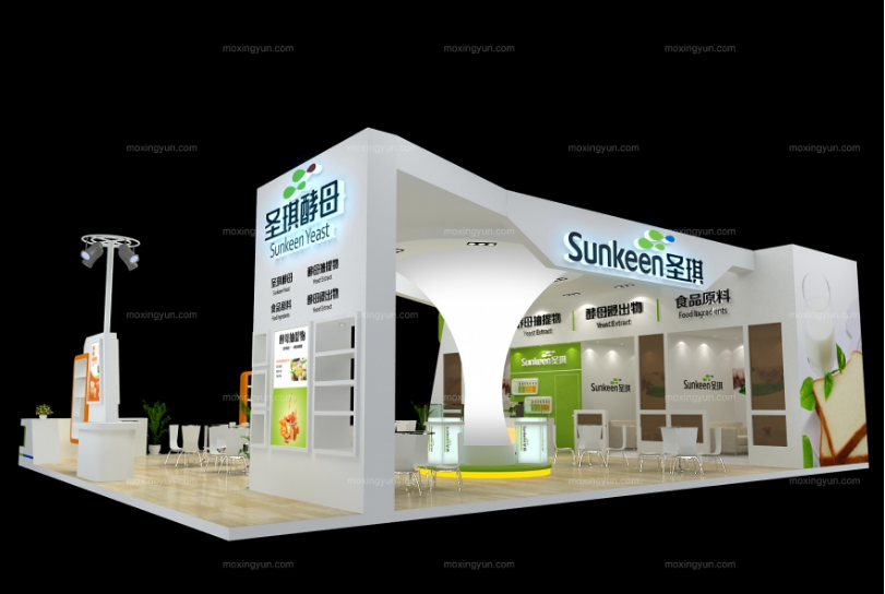 巧妙的運用白色作主色調搭配黃色,著重突出品牌和產品的展示,使整個展位明亮又時尚。