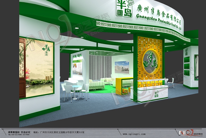 巧妙的運用白色、綠色作搭配,著重突出品牌和產品的展示,使整個展位時尚新穎。