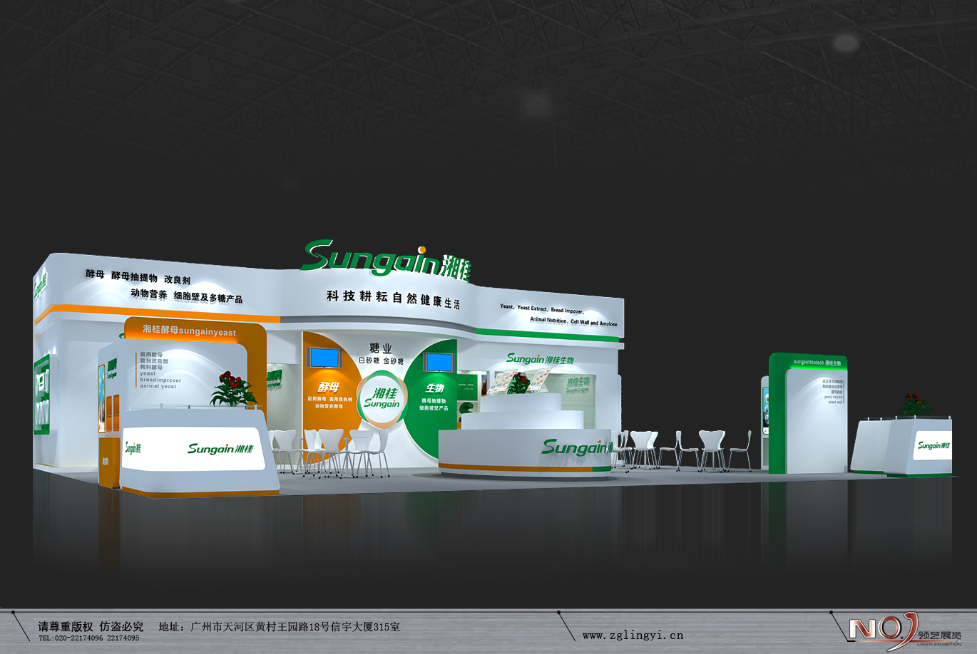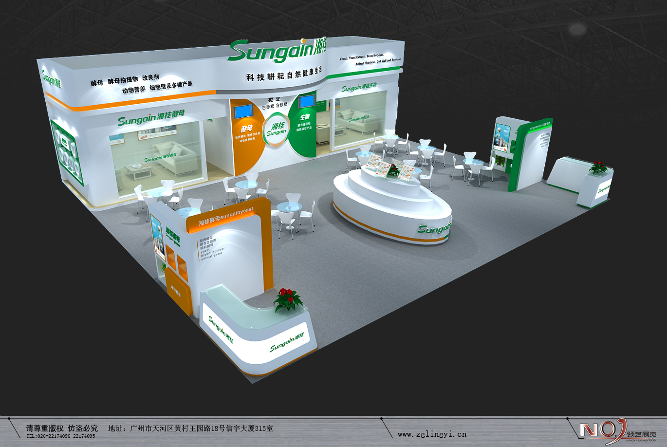 巧妙的運用綠色、白色做搭配,著重突出品牌和產品的展示,使整個展位時尚潮流、大方得體。