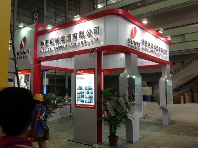 契合神奇電碳的品牌形象和產品特性,采用框型結構,再搭配燈具燈光的效果,襯托出展位簡潔、明亮的氛圍,突出一種創新、簡約的時尚品味。