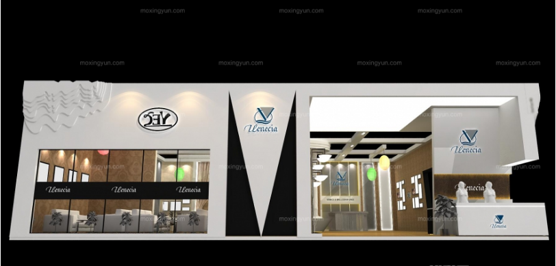 契合維涅斯的品牌形象和產品特性,采用曲線、框型結構,再搭配燈具燈光的效果,襯托出展位簡約、融合的氛圍,突出一種高端、舒適的時尚品味。