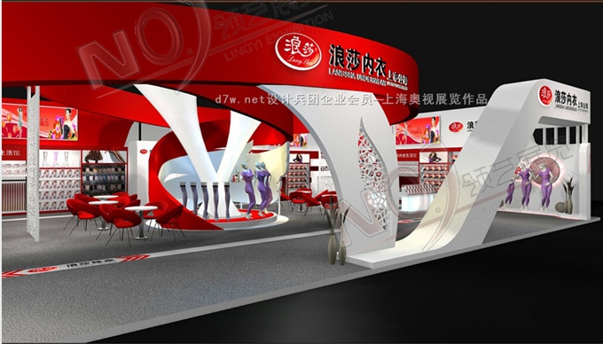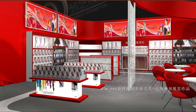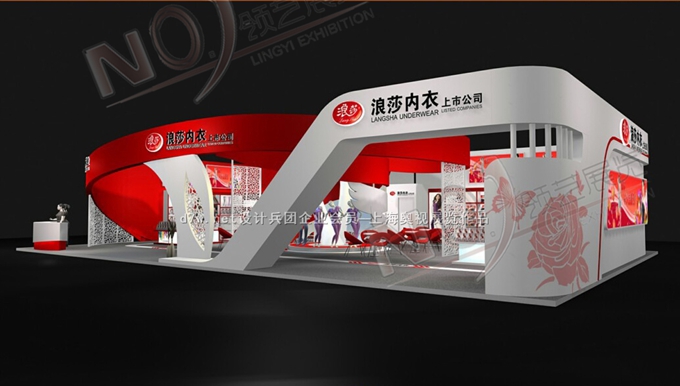 契合的浪莎襪業品牌形象和產品特性,采用矩形結構,再搭配燈具燈光的效果,襯托出展位浪漫溫馨的氛圍,突出一種青春、活力的時尚品味。