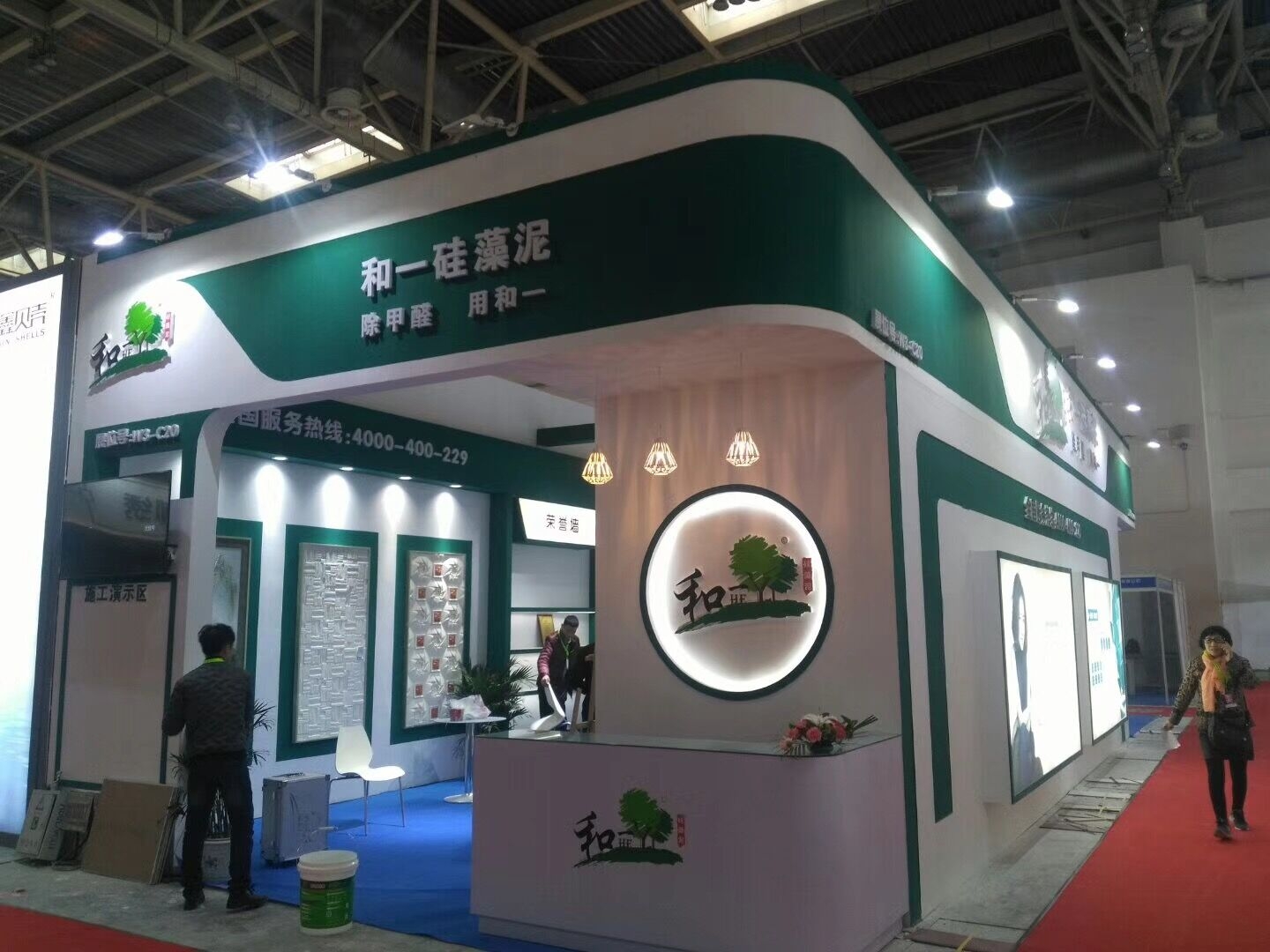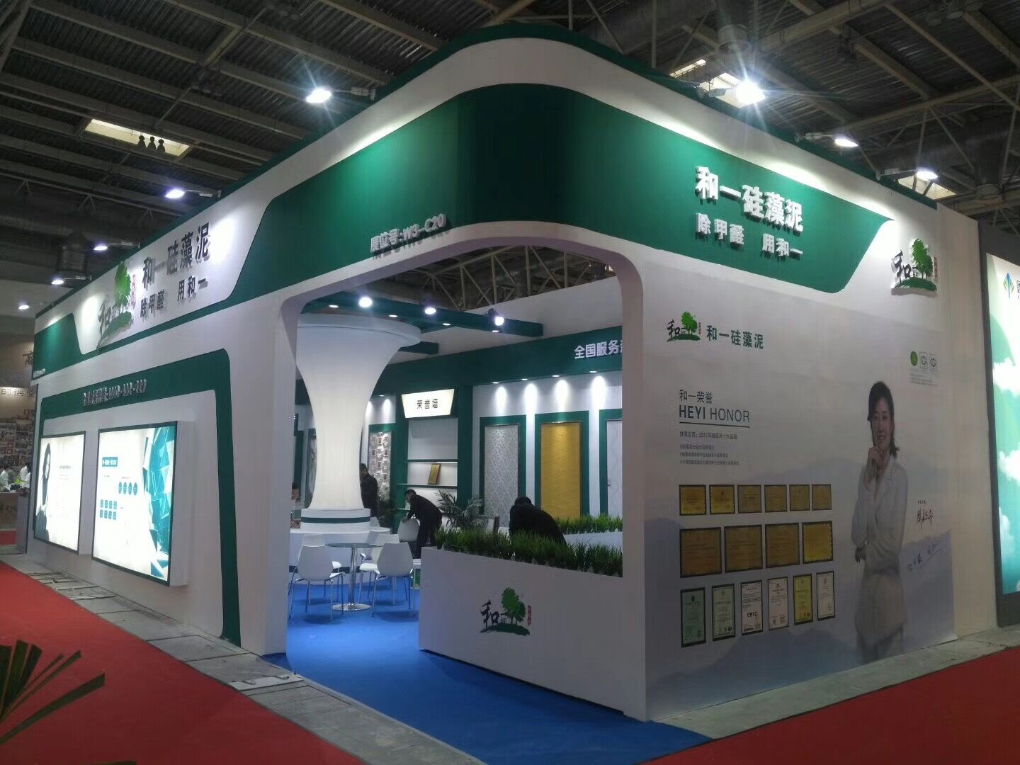 契合和一的品牌形象和產品特性,采用封閉式的造型,再搭配燈具燈光的效果,襯托出展位現代、清新氛圍,突出一種現代、高端的時尚品味。