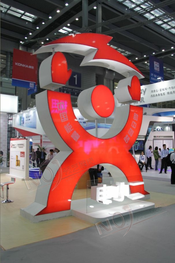 契合電小二手機的品牌形象和產品特性,以簡單的人形為主要架構,采用框型結構,再搭配燈具燈光的效果,襯托出展位簡約、超前的氛圍,突出一種精致、個性的時尚品味。