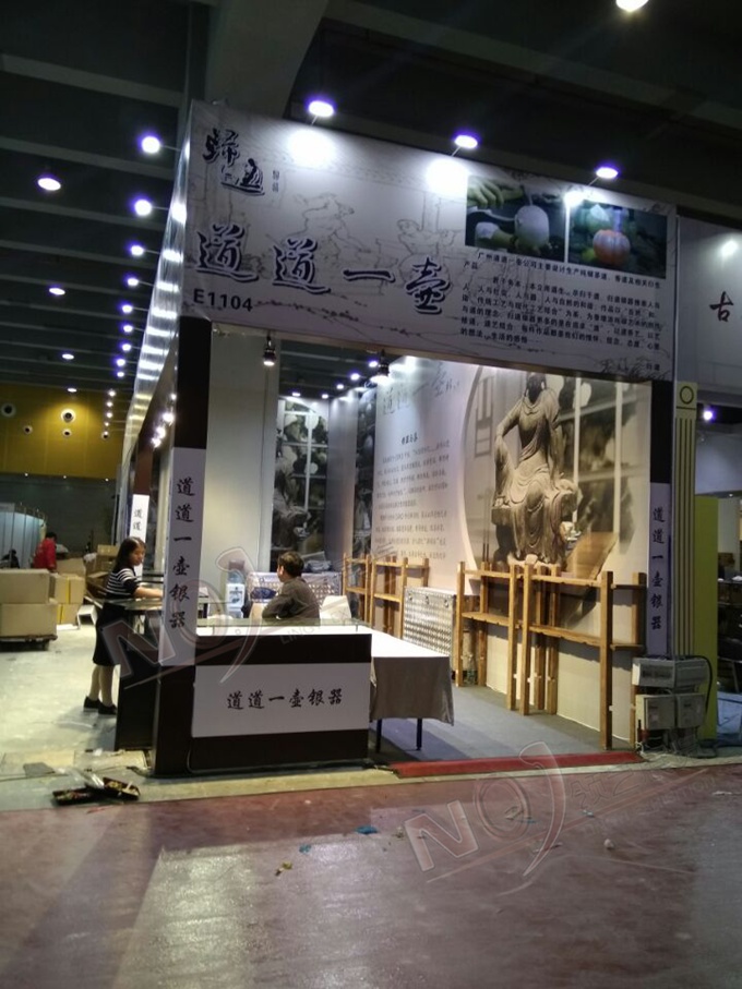 契合道道一壺的品牌形象和產品特性,采用矩形結構,再搭配燈具燈光的效果,襯托出展位高端、時尚的氛圍,突出一種現代、大氣的時尚品味。