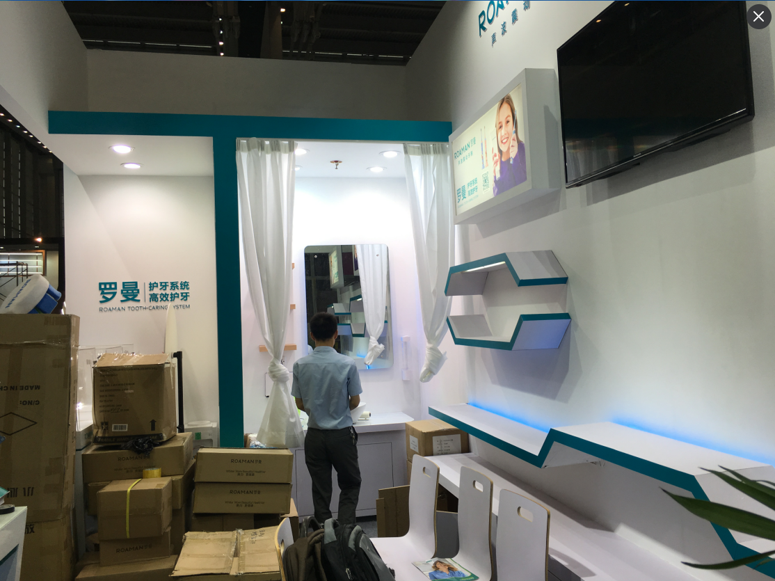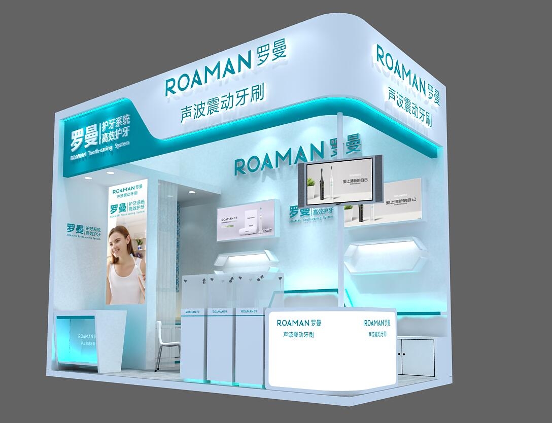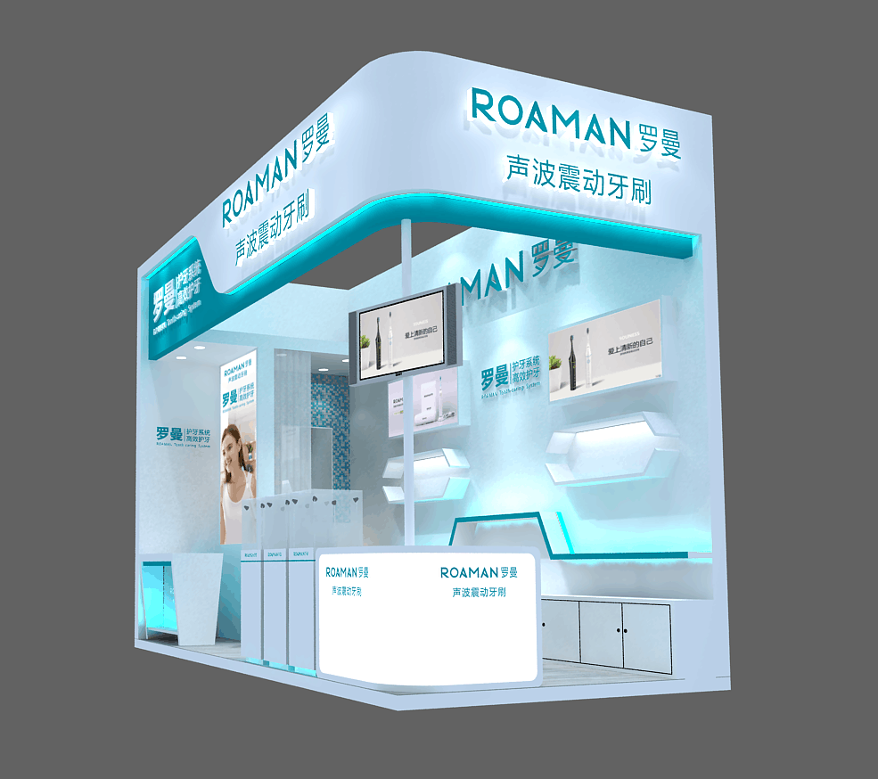 契合羅曼的品牌形象和產品特性,采用簡潔線條、結構,再搭配燈具燈光的效果,襯托出展位簡約、時尚的氛圍,突出一種現代、高端的品味。