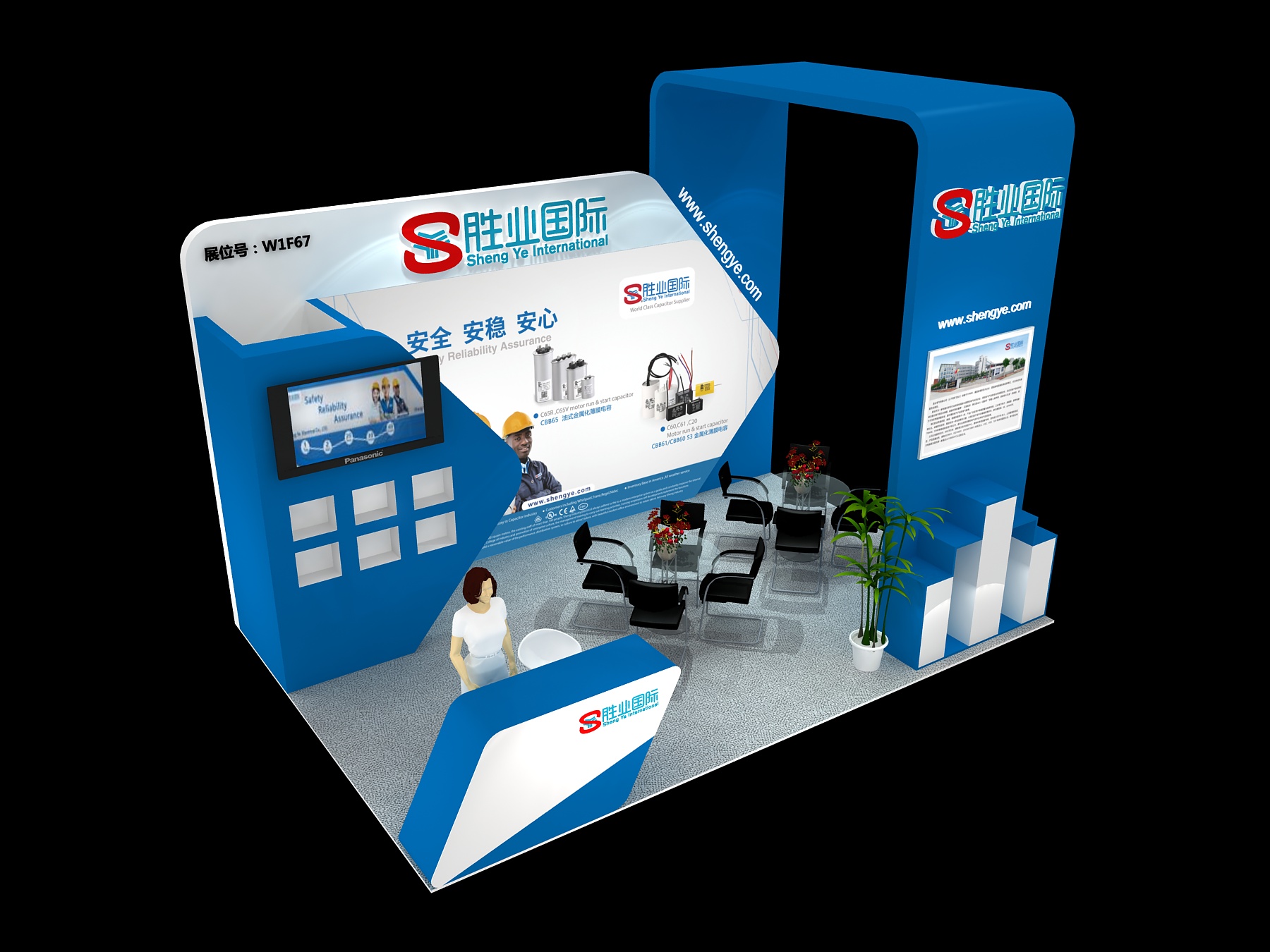 契合勝業的品牌形象和產品特性,采用開放式的造型,再搭配燈具燈光的效果,襯托出展位現代、清新氛圍,突出一種現代、高端的時尚品味。