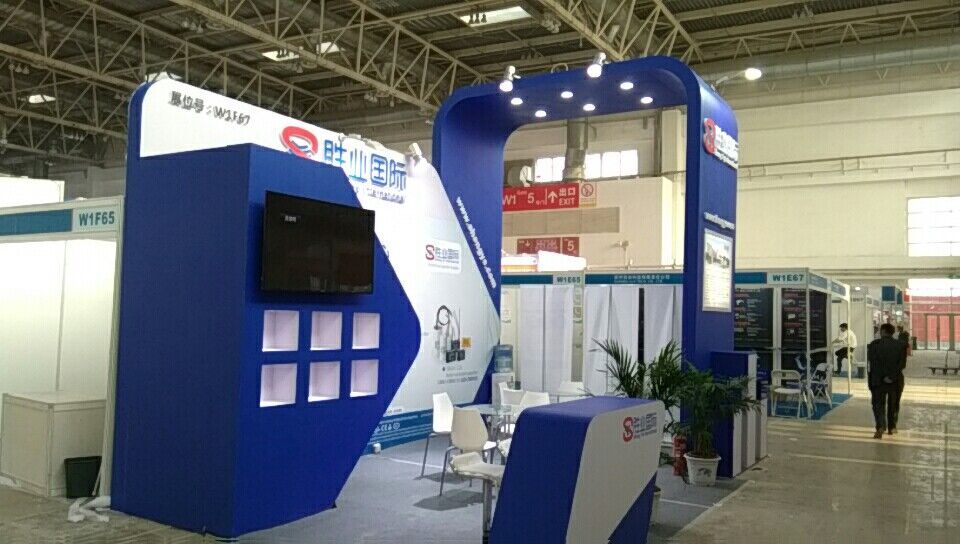 巧妙的運用白色作主色調搭配藍色,著重突出品牌和產品的展示,使整個展位高檔大氣