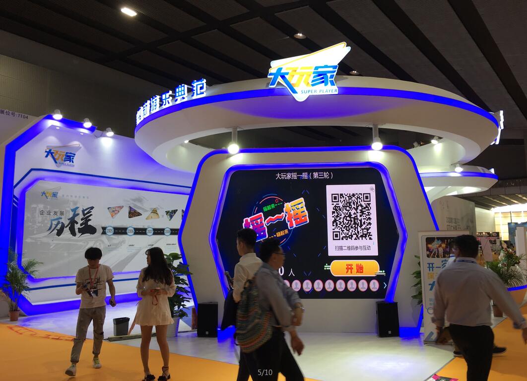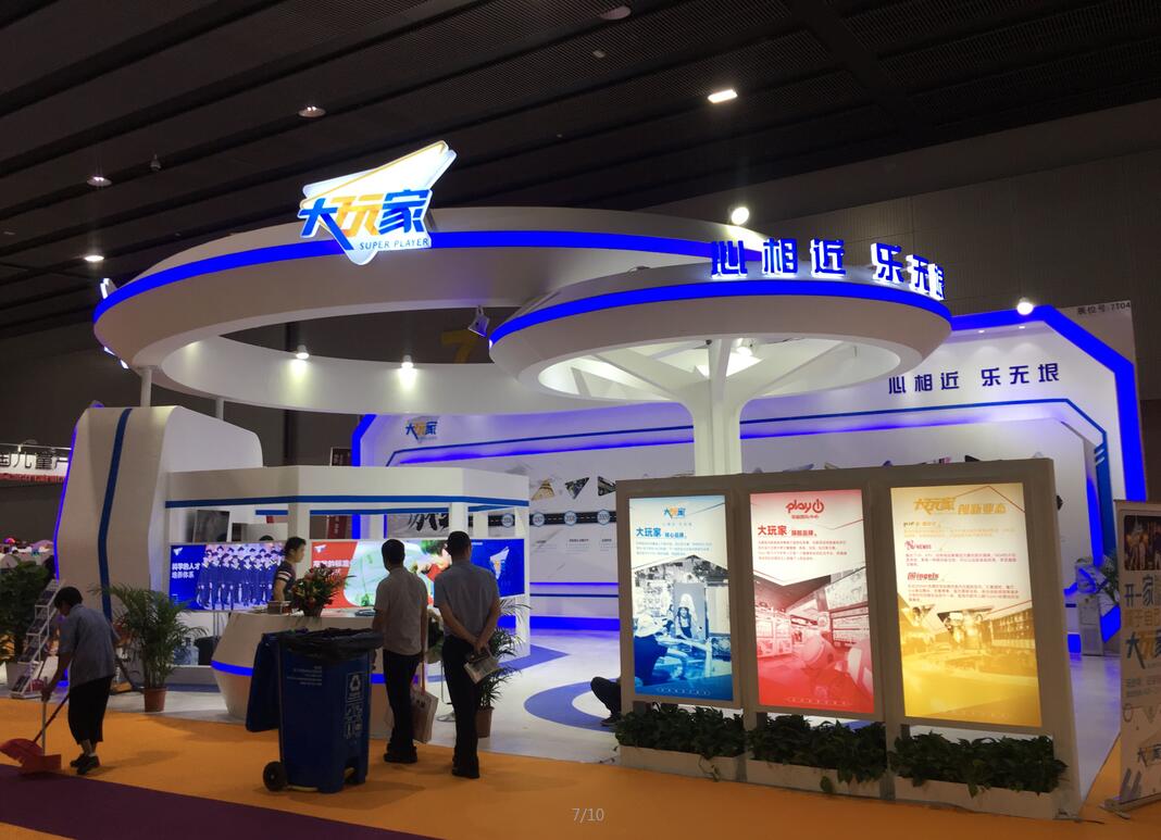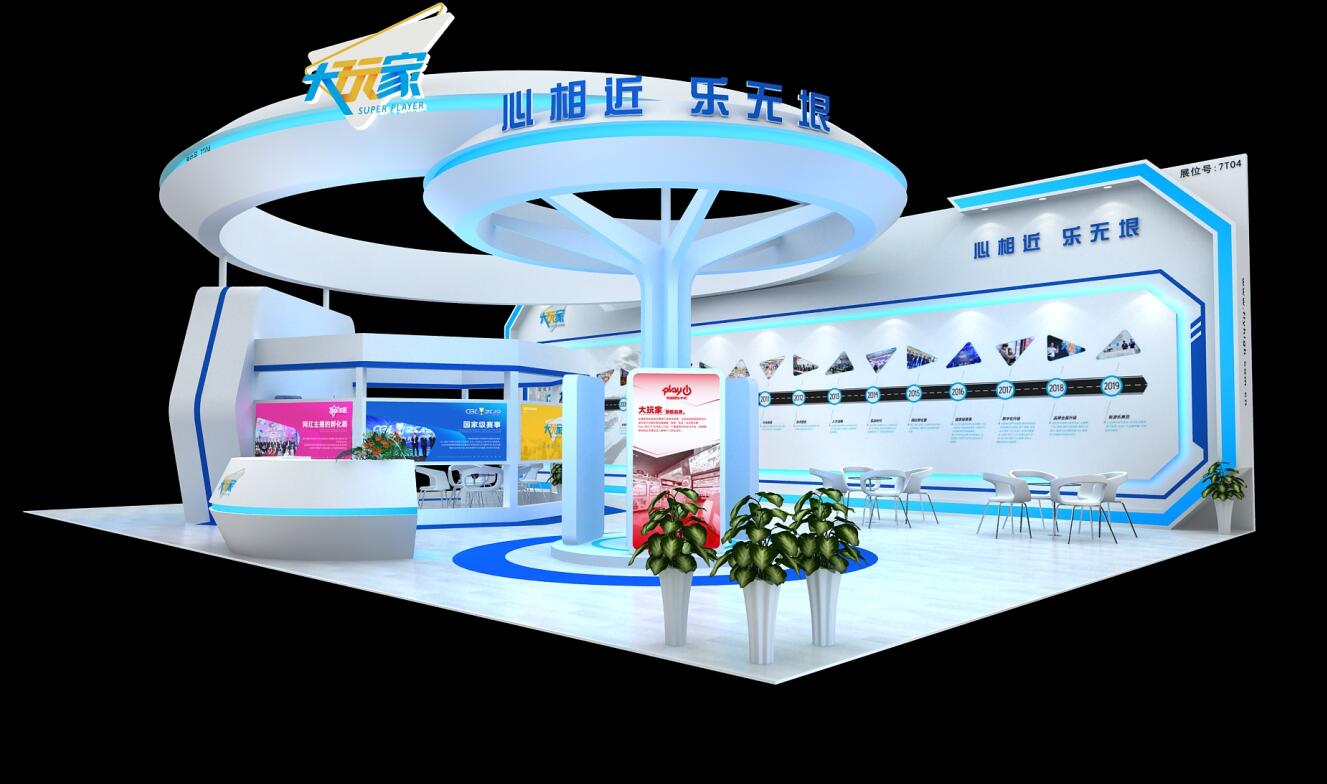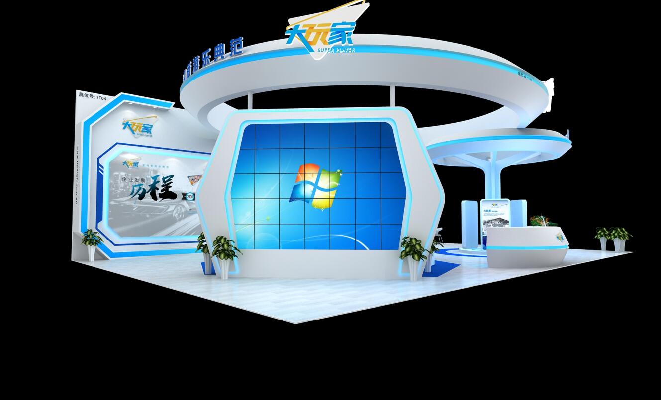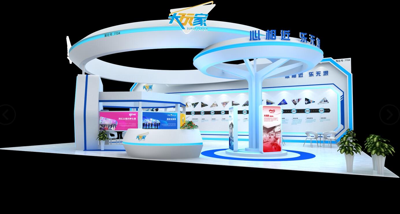 契合大玩家的品牌形象和產品特性,采用弧型結構,再搭配燈具燈光的效果,襯托出展位大氣、豪華的氛圍,突出一種簡約、時尚的品味。