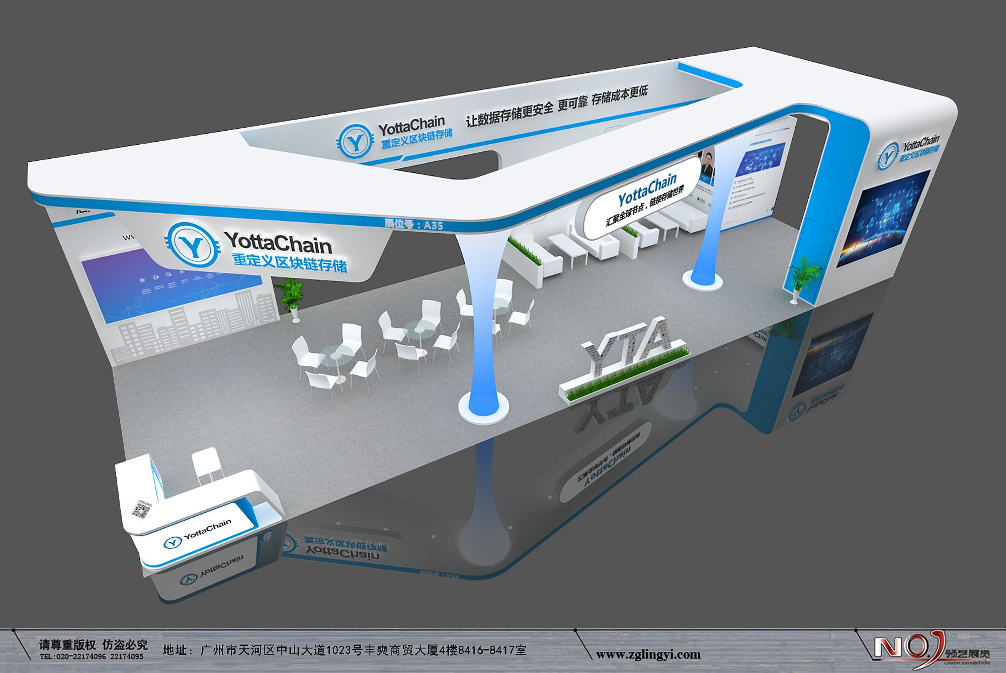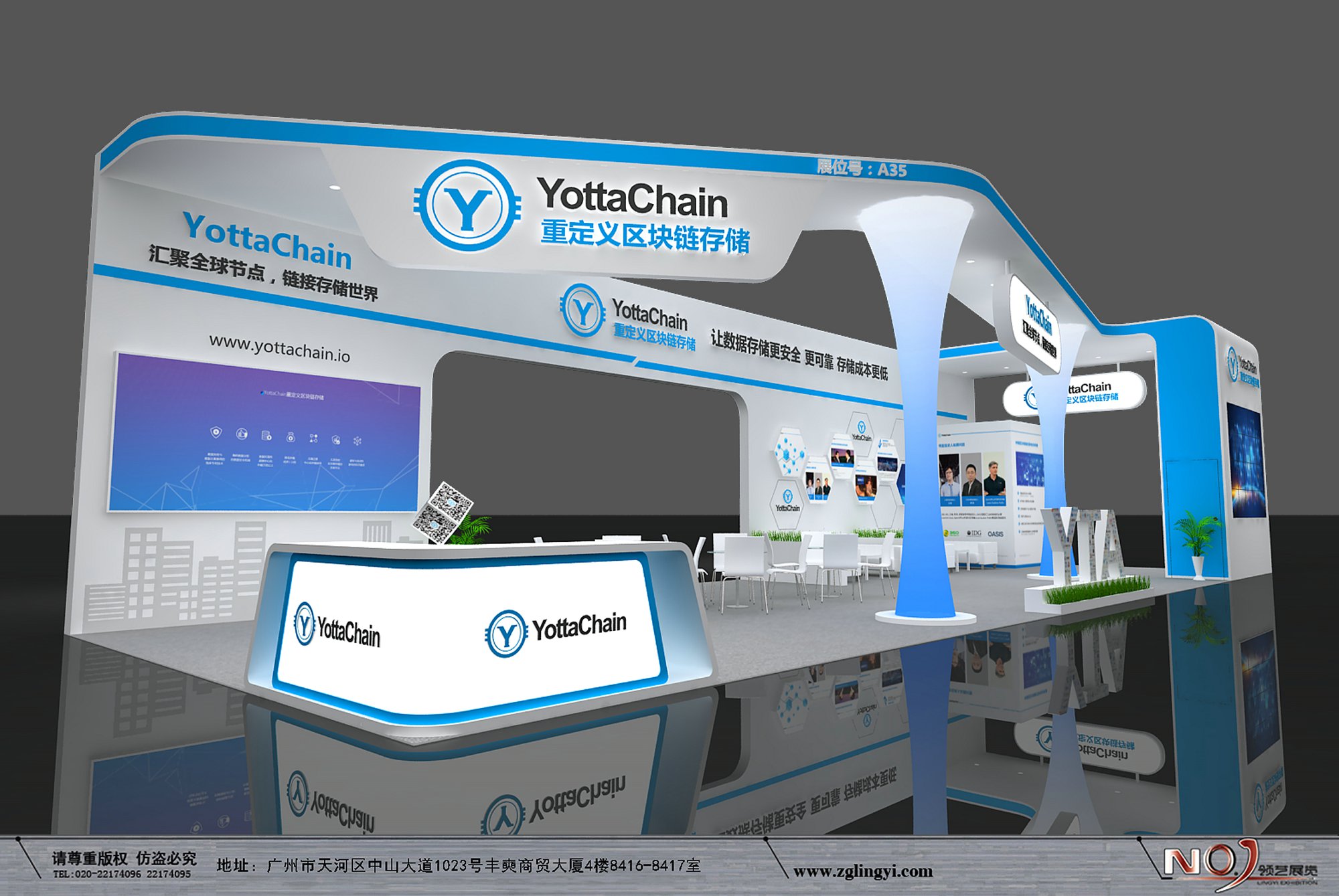 契合YottaChain的品牌形象和產品特性,采用開放式結構,再搭配燈具燈光的效果,襯托出展位大氣、豪華的氛圍,突出一種簡約、時尚的品味。