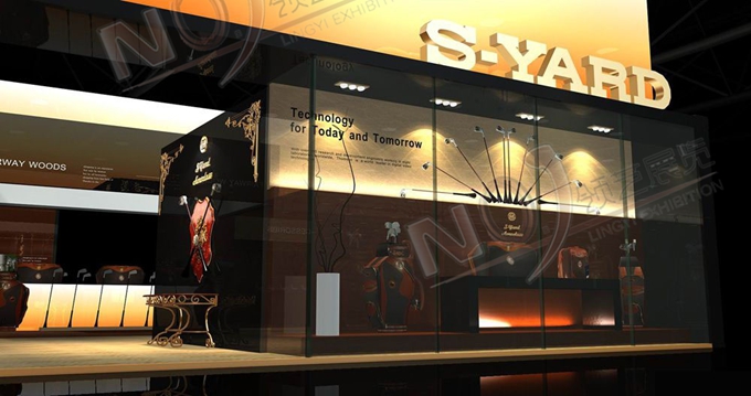契合的S-YARD品牌形象和產品特性,采用矩形結構,再搭配燈具燈光的效果,襯托出展位高端、時尚的氛圍,突出一種現代、歐美的時尚品味。