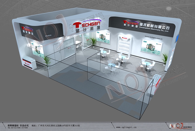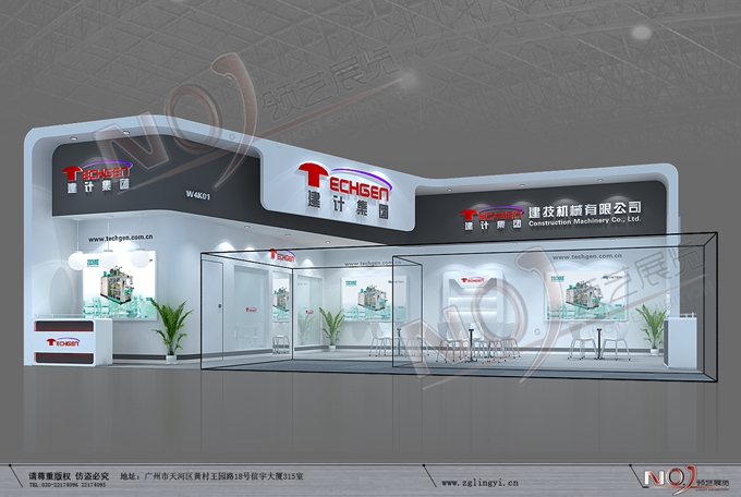 契合建技的品牌形象和產品特性,采用矩形結構,再搭配燈具燈光的效果,襯托出展位簡約、舒適的氛圍,突出一種現代、高端的時尚品味。