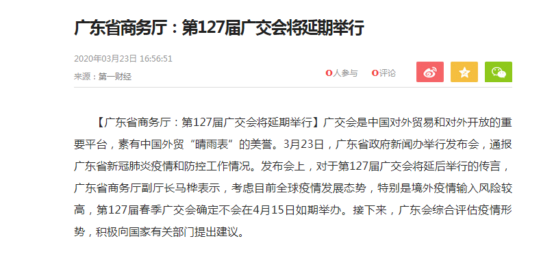 根據廣交會設計搭建公司領藝展覽了解到,3月23日,廣東省政府新聞辦舉行發布會,發布會上,對于第127屆廣交會將延后舉行的傳言,省商務廳副廳長馬樺表示,考慮目前全球疫情發展態勢,特別是境外疫情輸入風險較高,第127屆春季廣交會確定不會在4月15日如期舉辦。接下來,廣東會綜合評估疫情形勢,積極向國家有關部門提出建議如需廣交會設計請聯系領藝展覽,希望我們能在廣交會會搭建上為您添磚加瓦,祝各位朋友收獲多多,滿載而歸!
