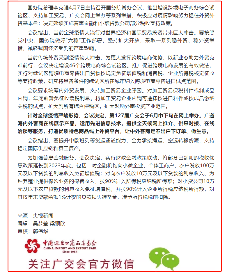 根據廣交會設計搭建公司領藝展覽了解到4月7日,央視新聞播發了《國務院:第127屆廣交會于6月中下旬在網上舉辦》。如需廣州展臺設計請聯系領藝展覽,希望我們能在展會搭建上為您添磚加瓦,祝各位朋友收獲多多,滿載而歸!