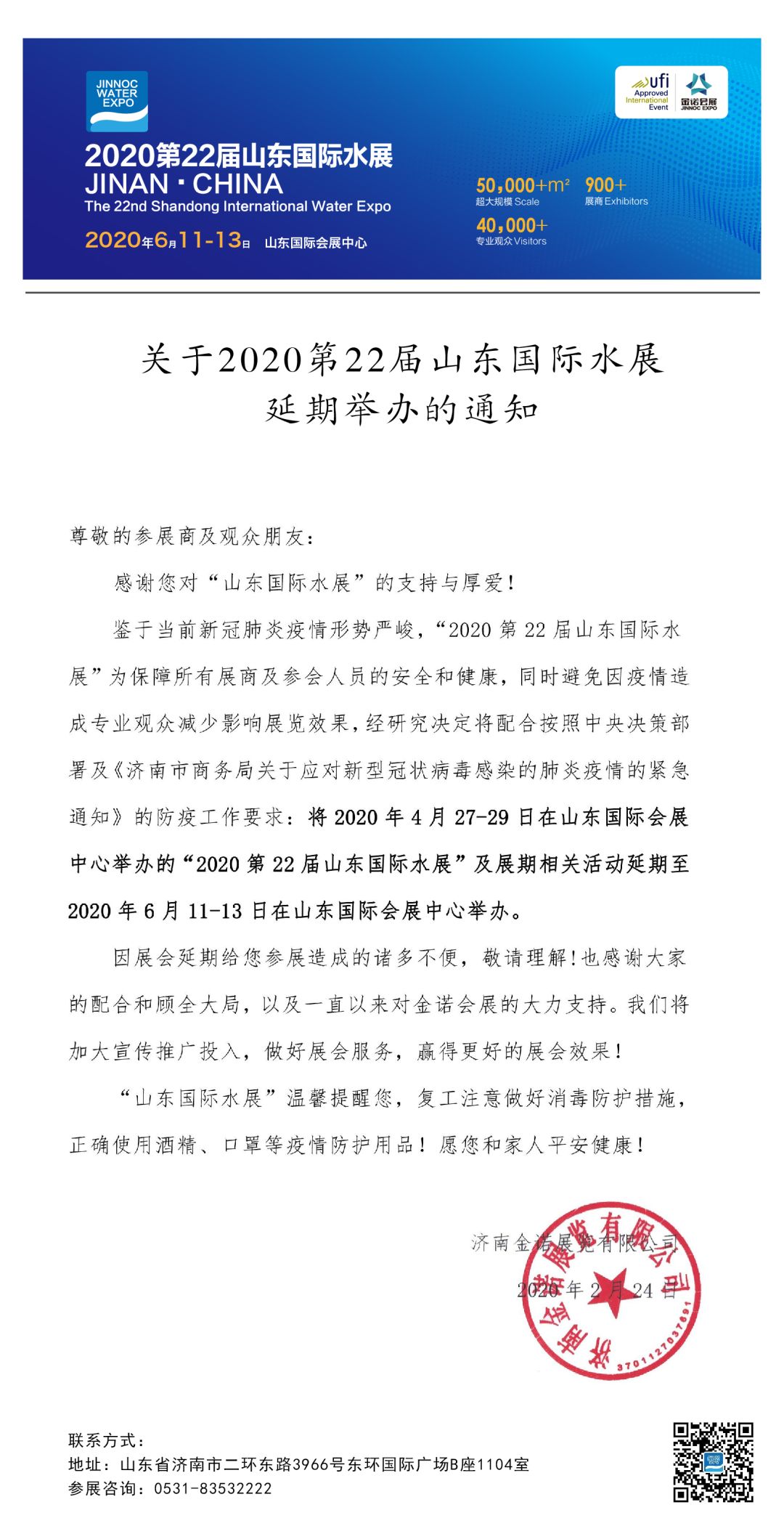 根據國際水展設計搭建公司領藝展覽了解到,2020第22屆山東國際水展會將延期至2020年6月11日-13日舉行。如需國際水展設計請聯系領藝展覽,希望我們能在國際水展搭建上為您添磚加瓦,祝各位朋友收獲多多,滿載而歸!