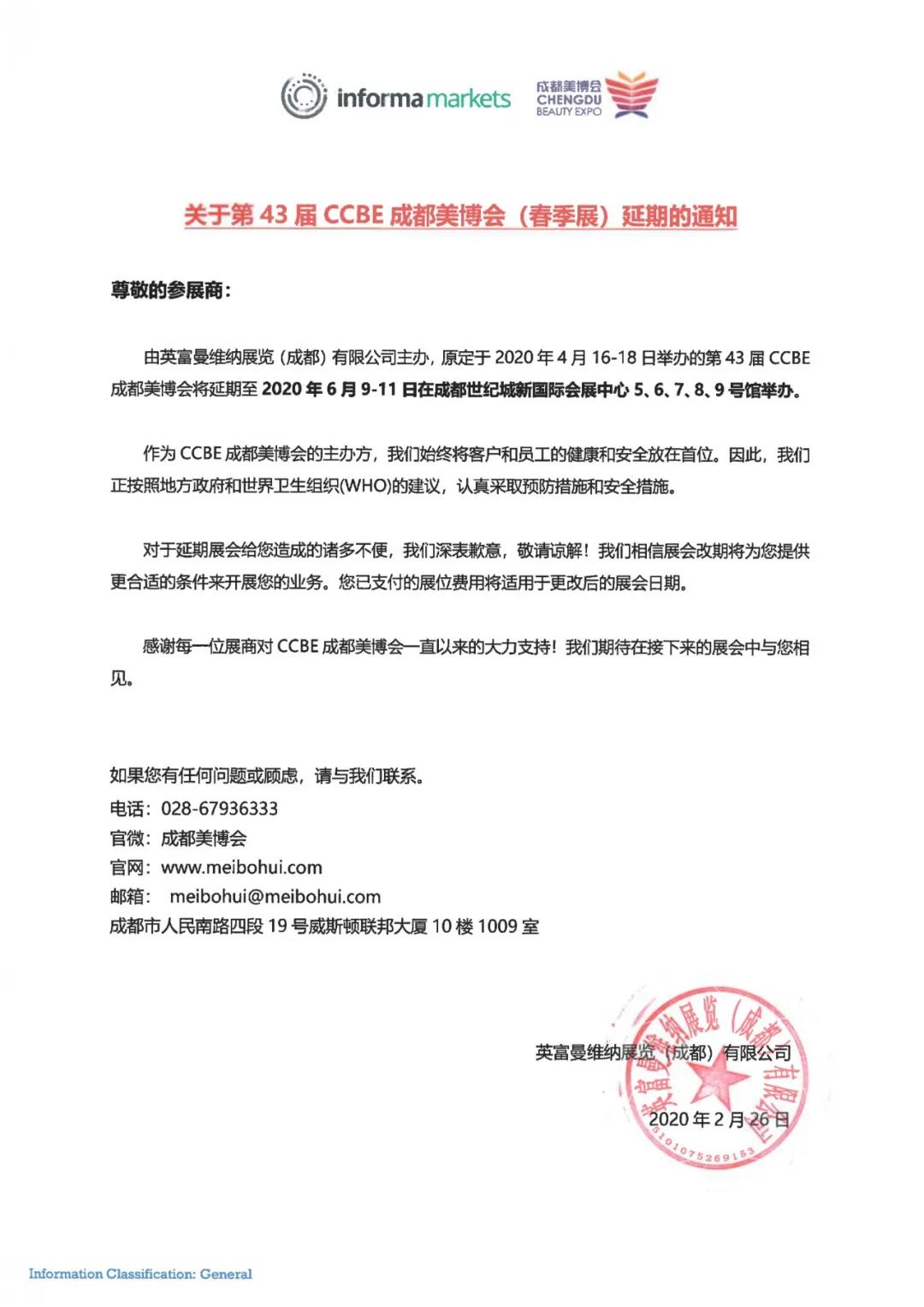 根據成都美博會設計搭建公司領藝展覽了解到,受新型冠狀病毒肺炎疫情影響。第43屆CCBE成都美博會延期至6月9日-11日在成都世紀城會展中心舉辦。如需成都美博會設計請聯系領藝展覽,希望我們能在成都美博會搭建上為您添磚加瓦,祝各位朋友收獲多多,滿載而歸