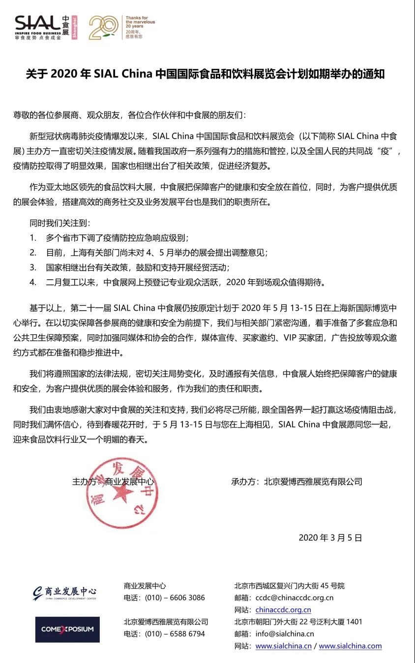 根據上海展臺設計搭建公司領藝展覽了解到,2020年 SIAL China 中食展計劃如期舉辦。如需上海中食展展臺設計請聯系領藝展覽,希望我們能在中食展展臺搭建上為您添磚加瓦,祝各位朋友收獲多多,滿載而歸!