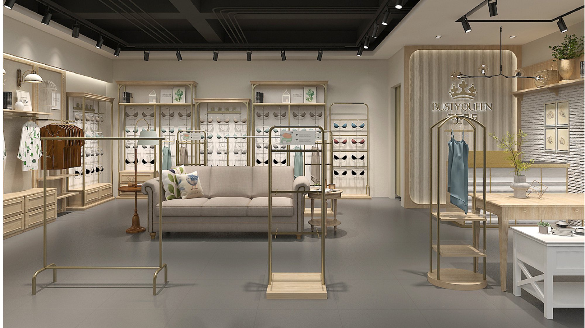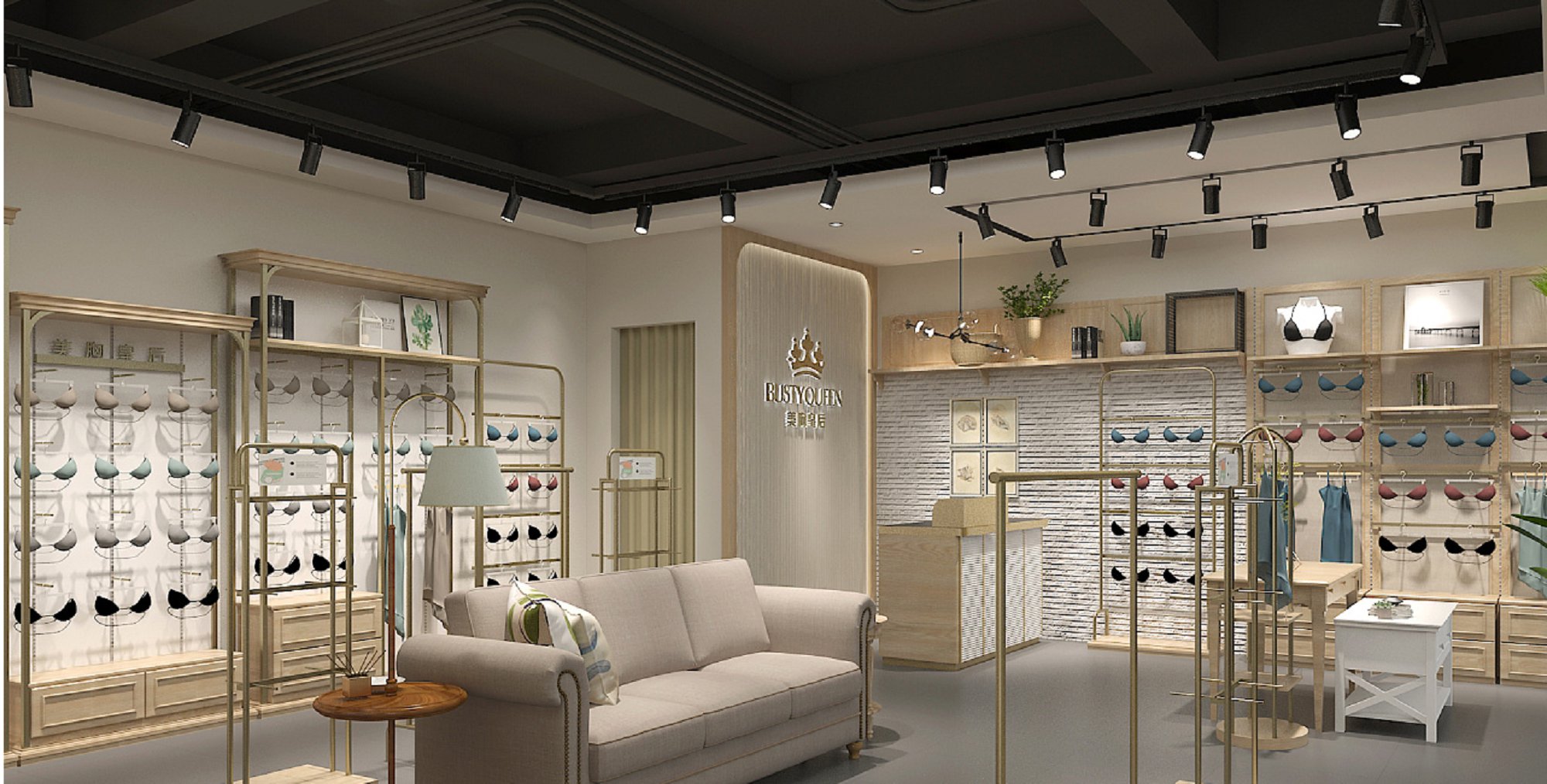 契合美胸皇后的品牌形象和產品特性,采用開放式結構進行合理的分區,再搭配燈具燈光的效果,襯托出專賣店大氣、豪華的氛圍,突出一種簡約、時尚的品味。