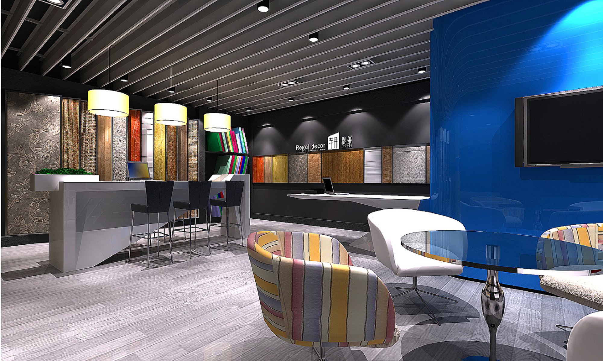 契合芊丹壁紙的品牌形象和產品特性,采用開放式結構進行合理的分區,再搭配燈具燈光的效果,襯托出專賣店大氣、豪華的氛圍,突出一種簡約、時尚的品味。
