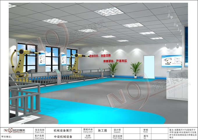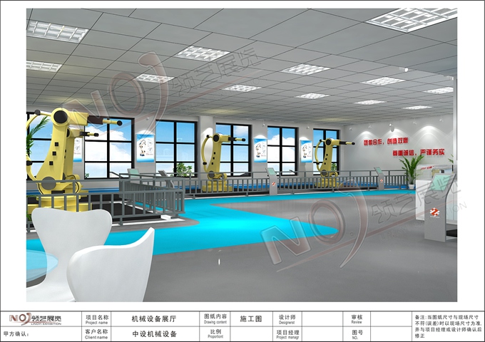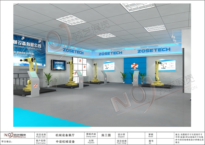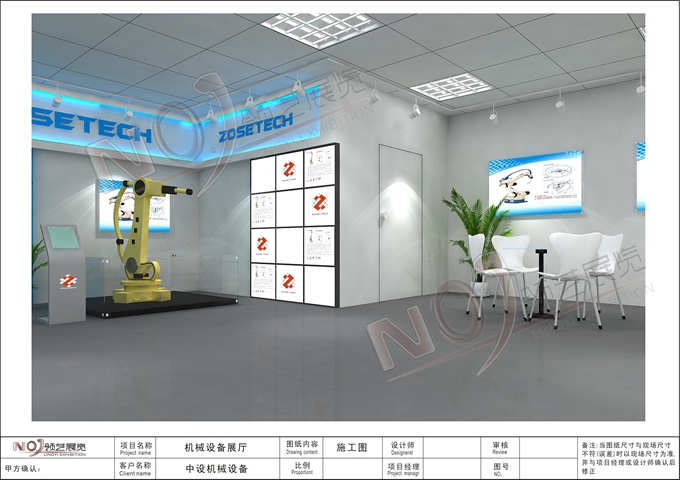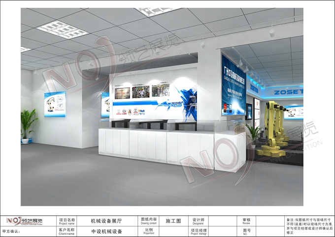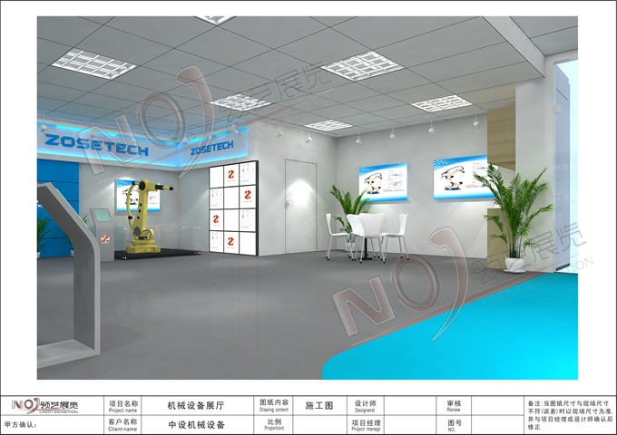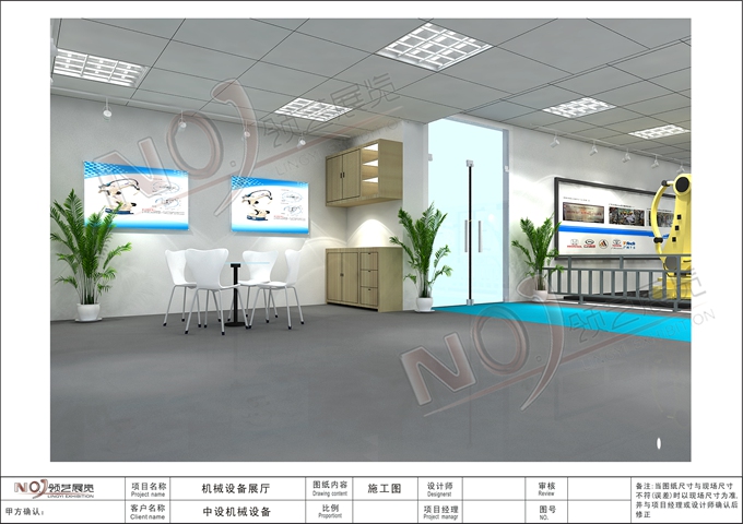 契合的中設機械品牌形象和產品特性,采用矩形結構,再搭配燈具燈光的效果,襯托出展位高端、時尚的氛圍,突出一種現代、大氣的時尚品味。