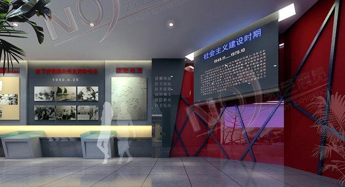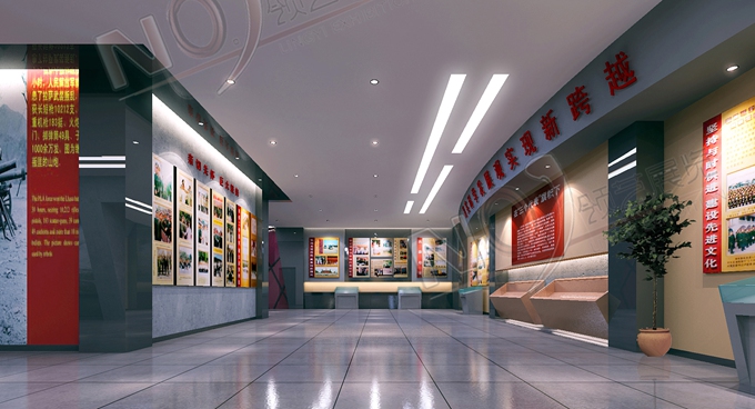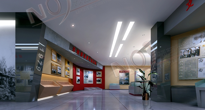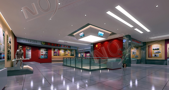 契合的蘭州軍區史館品牌形象和產品特性,采用矩形結構,再搭配燈具燈光的效果,襯托出展位高端、莊重的氛圍,突出一種嚴肅、肅靜的時尚品味。