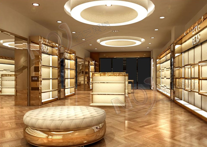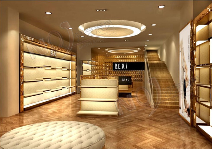 契合的波爾西斯品牌形象和產品特性,采用矩形結構,再搭配燈具燈光的效果,襯托出展位高端、時尚的氛圍,突出一種現代、歐美的時尚品味。