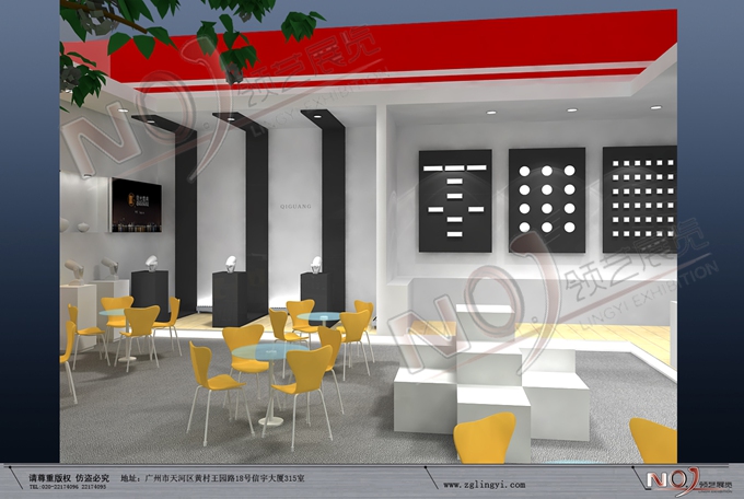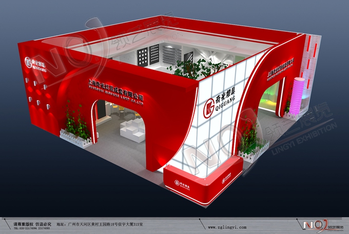 契合奇光的品牌形象和產品特性,采用矩形結構,再搭配燈具燈光的效果,襯托出展位時尚、簡約的氛圍,突出一種現代、活力的時尚品味。