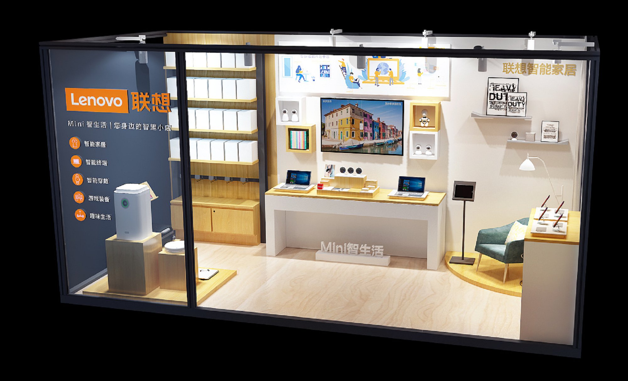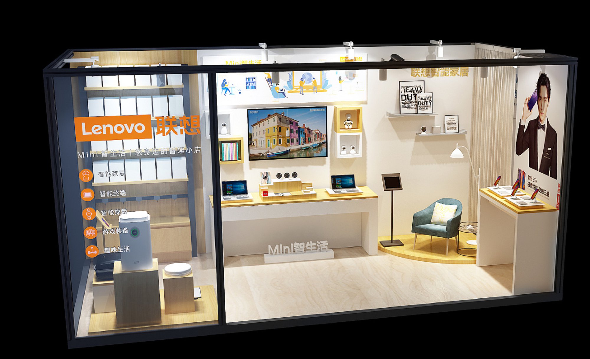 契合聯想的品牌形象和產品特性,采用開放式結構進行合理的分區,再搭配燈具燈光的效果,襯托出直播間大氣、豪華的氛圍,突出一種簡約、時尚的品味。